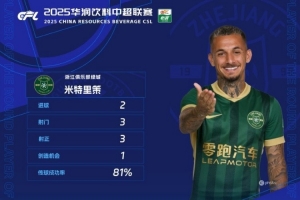 开云app-首秀贡献2球1助,浙江队新外援米特里策当选中超第15轮最佳球员